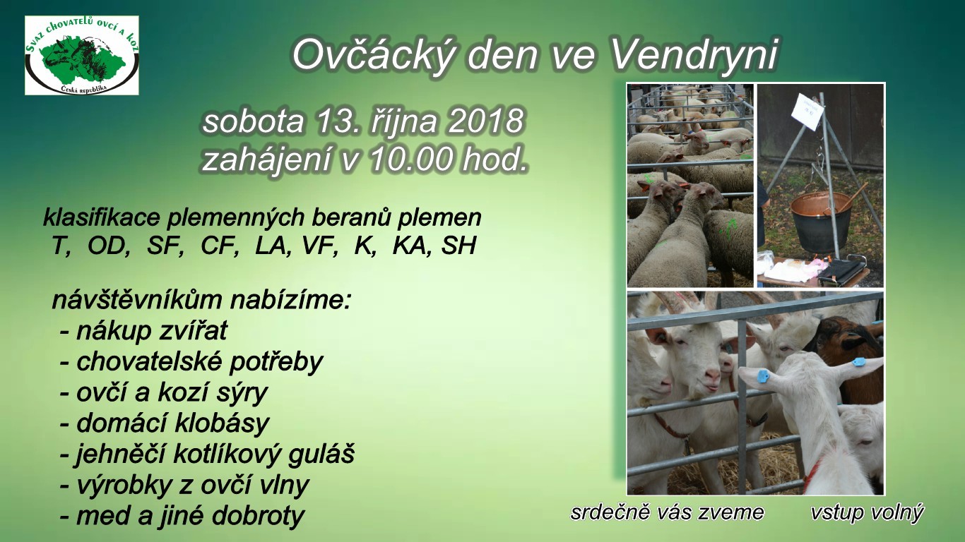 Zveme vás na Ovčácký den ve Vendryni, který se koná 13.10.2018 od 10h. Pozvánka v příloze